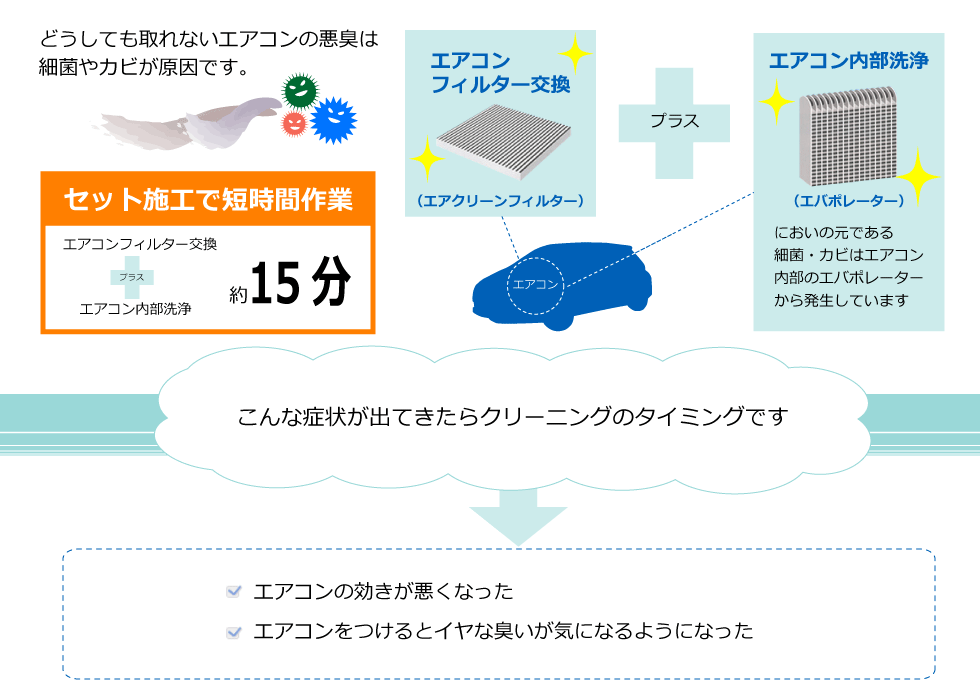 家庭用エアコンと同じく、汚れたフィルター交換とともに本体も定期的に 洗浄して、においの元を取り除くことが大切です。