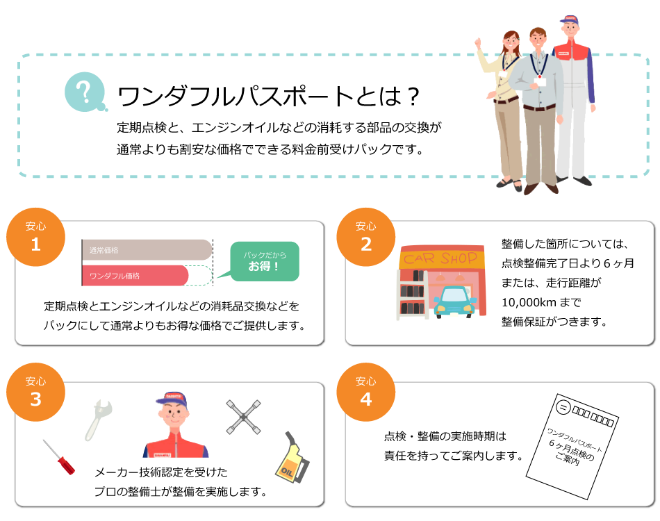 安心6か月点検 ・エンジンオイル交換 ・洗車 |